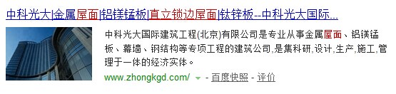 直立鎖邊屋面、直立鎖邊屋面系統(tǒng)在百度快照排名?