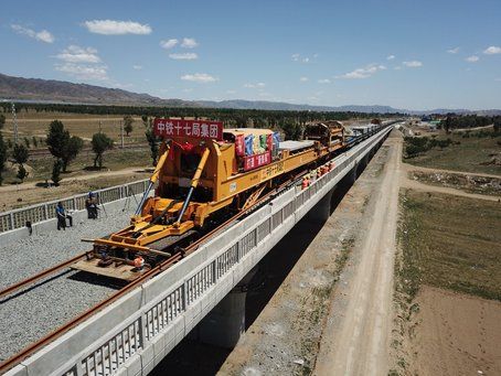 到軌道道床上,標志著大同至張家口高速鐵路(大張高鐵)全線進入鋪軌階段。