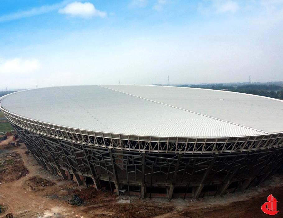 上部金屬屋頂為大跨度鋼桁架結(jié)構(gòu)。
